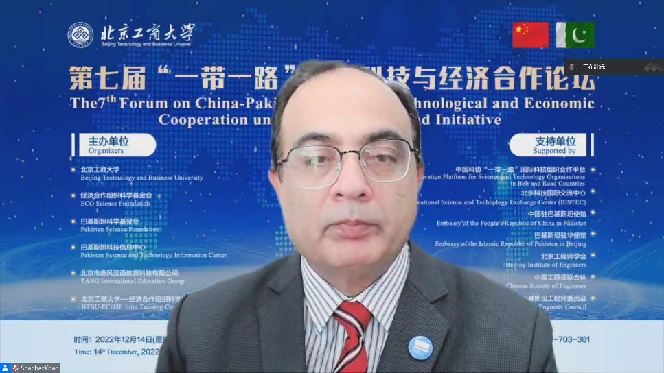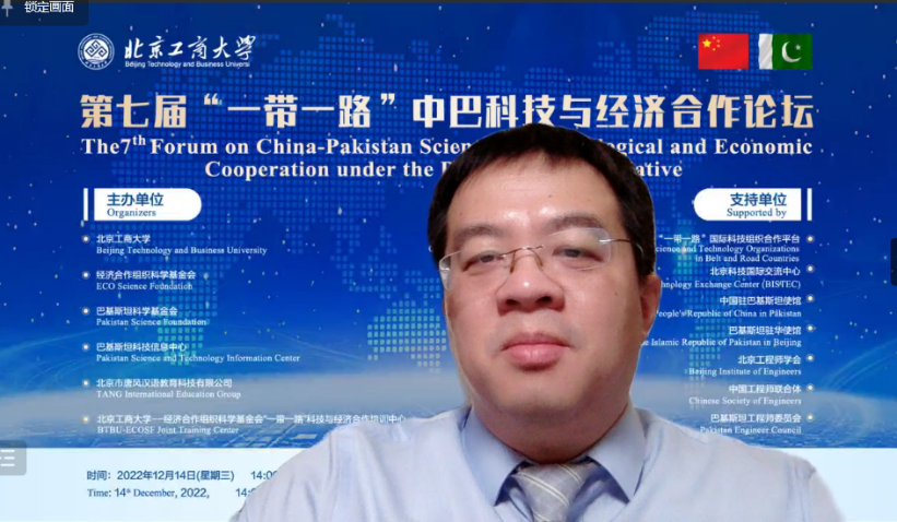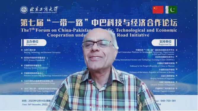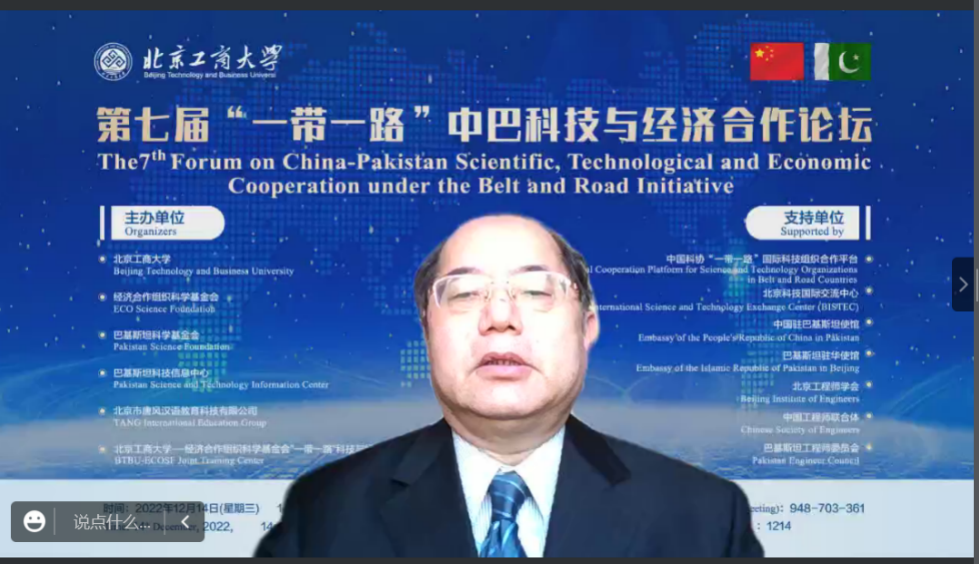 王慶林在致辭中表示,秉持以科學(xué)繁榮發(fā)展造福各國(guó)人民的理念,中國(guó)科協(xié)高度重視與世界各國(guó)的科技合作和人文交流,致力于增進(jìn)科技界的開(kāi)放、信任、合作,推動(dòng)構(gòu)建全球科技共同體。2016年中國(guó)科協(xié)啟動(dòng)實(shí)施了“一帶一路”國(guó)際科技組織合作平臺(tái)建設(shè),吸引了200多個(gè)國(guó)際組織和150多個(gè)國(guó)家的1000多個(gè)國(guó)別組織和機(jī)構(gòu)參與,成為了全球科技界開(kāi)展科技人文交流與合作的重要支撐平臺(tái)。北京工商大學(xué)巴基斯坦科技與經(jīng)濟(jì)研究中心是第一批獲得“一帶一路”國(guó)際科技組織合作平臺(tái)建設(shè)項(xiàng)目資助的國(guó)別研究中心。中巴兩國(guó)是親如兄弟的友好鄰邦。在11月巴基斯坦總理夏巴茲閣下訪華期間,習(xí)近平主席強(qiáng)調(diào),近年來(lái)兩國(guó)在世界變局亂局中相互支持、砥礪前行,彰顯中巴“鐵桿”情誼。中國(guó)科協(xié)也將以實(shí)際行動(dòng)落實(shí)兩國(guó)領(lǐng)導(dǎo)人的會(huì)晤精神,在工作中持續(xù)推動(dòng)構(gòu)建中巴命運(yùn)共同體。