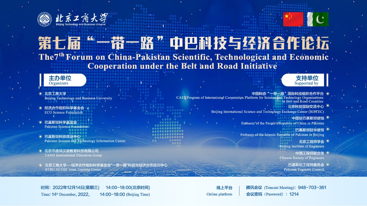 12月14日,在中國(guó)科學(xué)技術(shù)協(xié)會(huì)國(guó)際合作部、北京市科學(xué)技術(shù)協(xié)會(huì)、中國(guó)駐巴基斯坦大使館、巴基斯坦駐華大使館等單位的大力支持下,我校聯(lián)合經(jīng)濟(jì)合作組織科學(xué)基金會(huì)、巴基斯坦科技與經(jīng)濟(jì)及研究中心、唐風(fēng)國(guó)際教育集團(tuán)、北京環(huán)球英才交流促進(jìn)會(huì)等單位共同舉辦了第七屆“一帶一路”中巴科技與經(jīng)濟(jì)合作論壇。校黨委常委、副校長(zhǎng)劉敏華,中國(guó)科協(xié)國(guó)際合作部一級(jí)巡視員王慶林,北京市科協(xié)黨組成員、副主席、一級(jí)巡視員田文,聯(lián)合國(guó)教科文組織駐華代表處主任夏澤翰,巴基斯坦經(jīng)濟(jì)合作組織科學(xué)基金會(huì)主席薩義德 ? 科邁爾 ? 塔耶比,巴基斯坦科技信息中心主任阿卡姆·謝赫,巴基斯坦科技部國(guó)際合作司副司長(zhǎng)汗 ? 穆罕穆德 ? 瓦澤等出席了會(huì)議。會(huì)議由國(guó)際經(jīng)管學(xué)院黨委書記郭毅,我校名譽(yù)教授曼佐爾·侯賽因·索洛,巴基斯科技與經(jīng)濟(jì)研究中心執(zhí)行主任邸玉娜,數(shù)字經(jīng)濟(jì)系副主任韓璐共同主持。