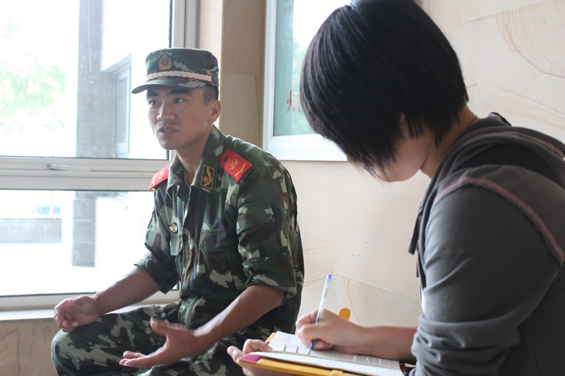 陳磊教官曾任我校09級軍訓女子擒敵拳示范班的班長,對于他在所帶領的這個班,陳教官說:“我覺得我現在帶的這個班整體都很好,她們都很認真的訓練,我希望能把她們都帶入示范班,而且也有這個信心。”