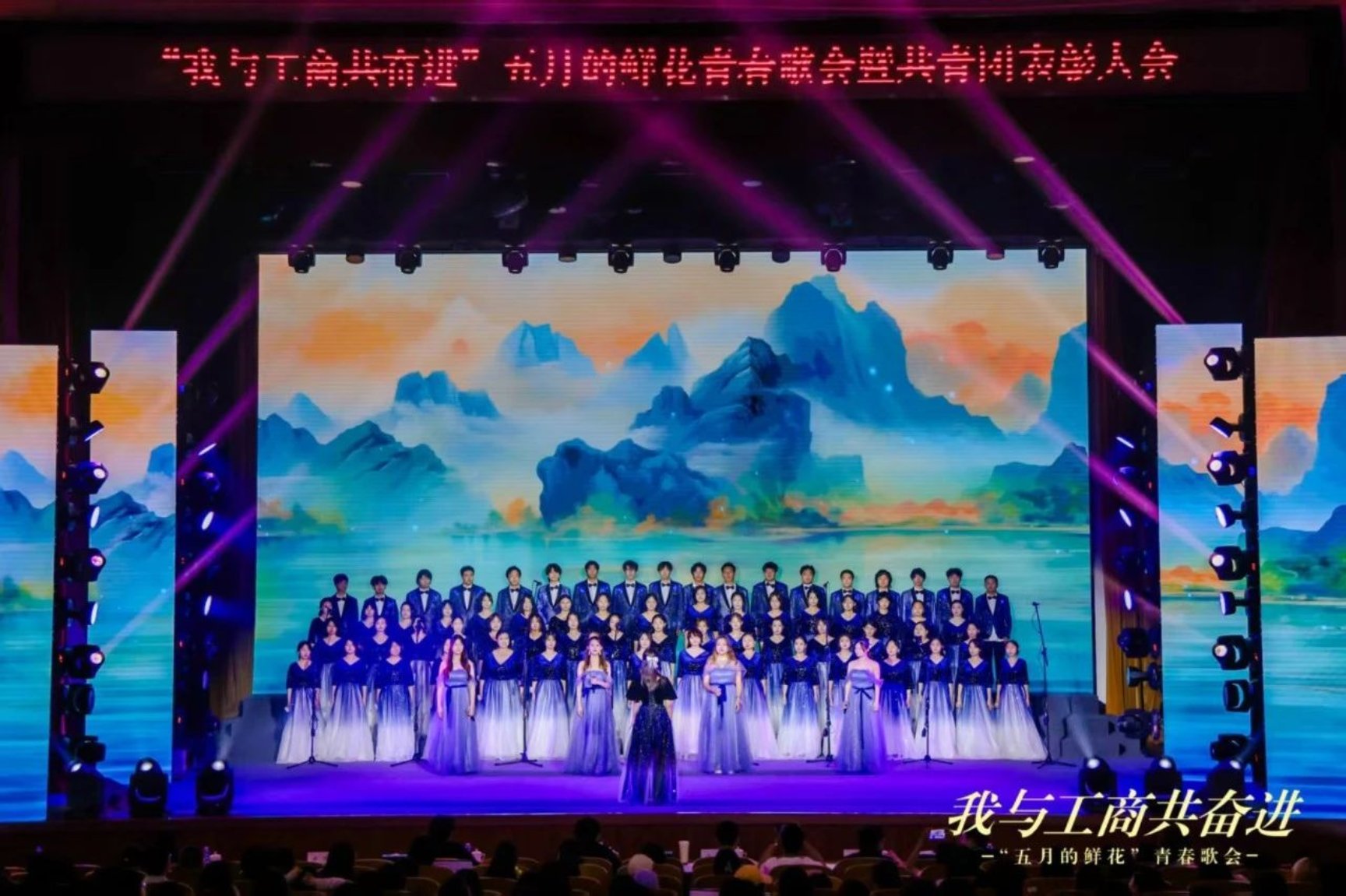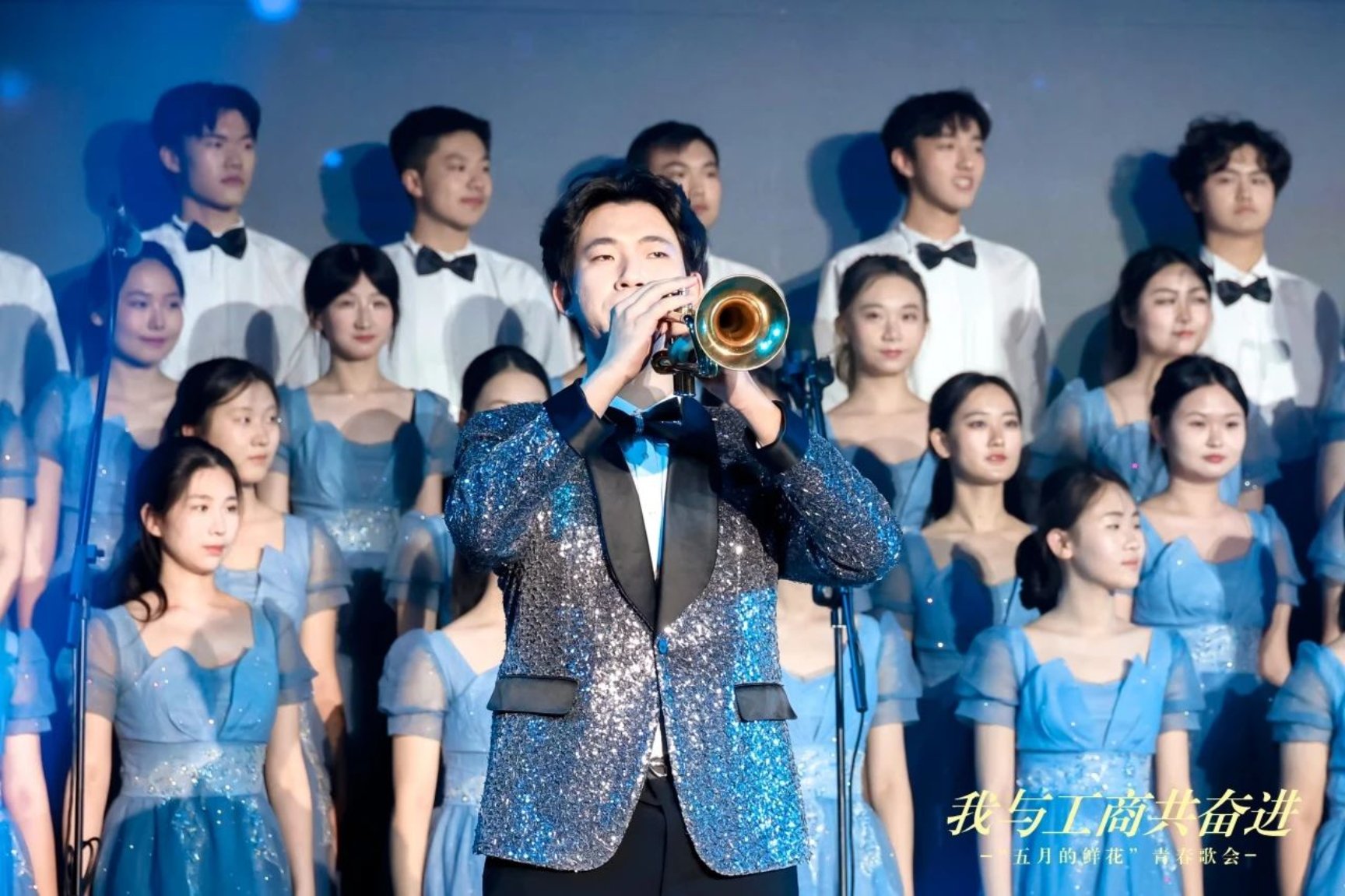 商學(xué)院昂揚(yáng)勵(lì)志《在燦爛陽(yáng)光下》《一路生花》,譜寫出在黨的光輝照耀下,奮斗者們堅(jiān)持不懈、逐夢(mèng)前行,終獲繁花簇?fù)恚ビ舴曳嫉拿篮卯嬀怼?0年代、80年代、90年代、00年代四屆校友用飽含深情的誦讀,表達(dá)了對(duì)母校的感恩和衷心祝愿,更表達(dá)出對(duì)學(xué)弟學(xué)妹們勇敢追夢(mèng)、綻放青春的美好祝福。演出傳遞出薪火相傳的奮進(jìn)力量,描繪了北工商學(xué)子與母校共奮進(jìn)、與祖國(guó)共成長(zhǎng)的動(dòng)人場(chǎng)景。