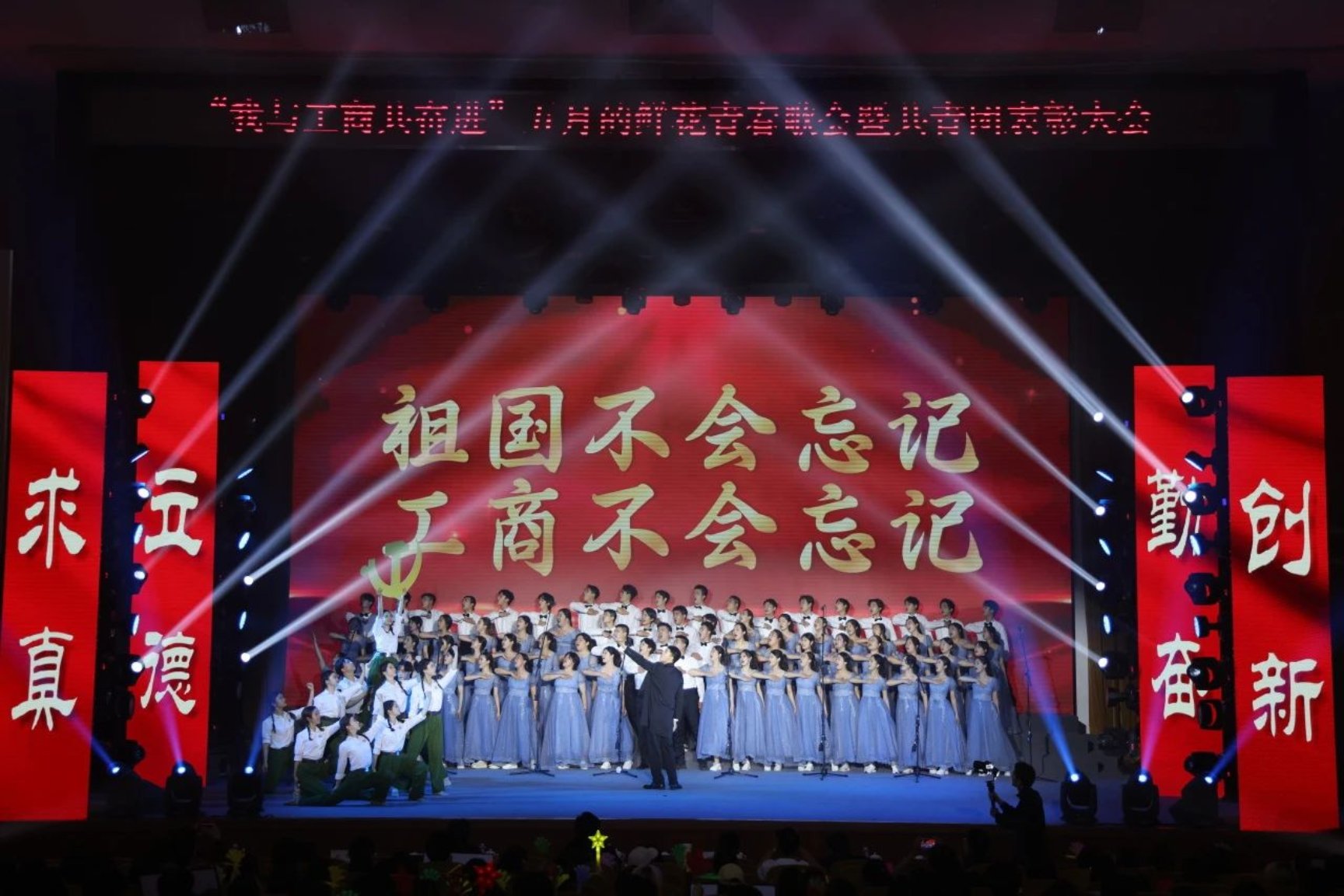 經(jīng)濟(jì)學(xué)院、數(shù)字書院的《祖國(guó)不會(huì)忘記》《新的天地》,精心設(shè)計(jì)老中青三代校友傳承接力,展現(xiàn)北工商七十五載薪火相傳的奮進(jìn)力量。他們用歌聲講述著母校發(fā)展的風(fēng)雨兼程,他們用歌聲唱出一代代工商人的壯志豪情。