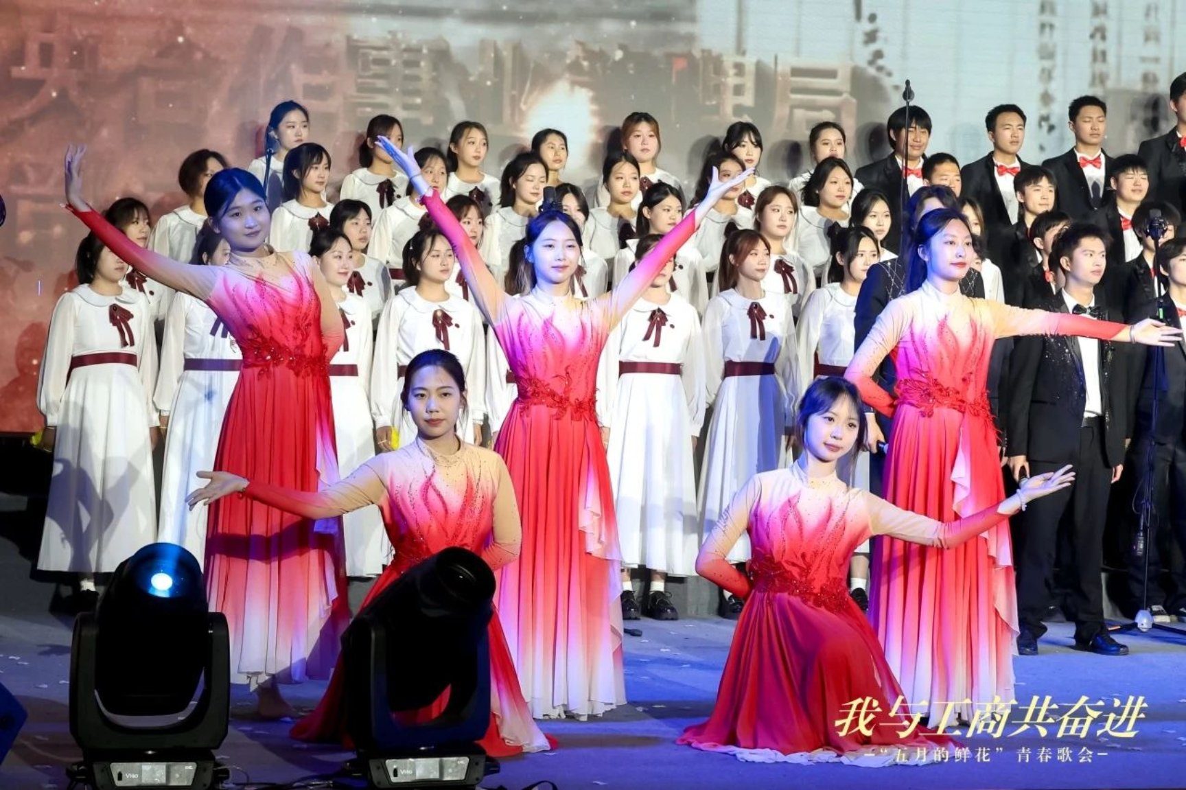 校舞蹈團(tuán)活力四射的《奔跑的青春》旋律,拉開(kāi)了青春歌會(huì)的序幕。