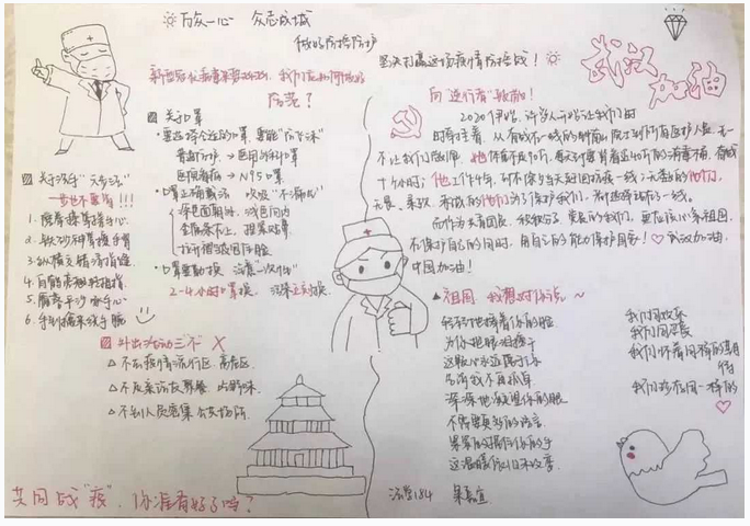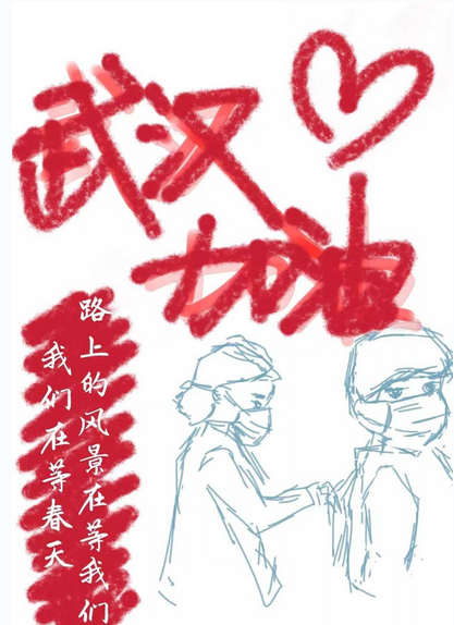 北工商學子手繪“戰疫書”,向在“戰疫”一線的工作者致敬!這關我們一起過。