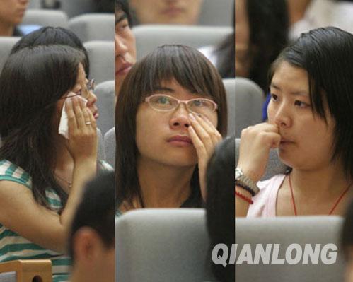蔣敏在報告中幾度哽咽,臺下的同學更是邊聽邊流淚。一位堅強的母親,一位盡職盡責的人民警察,站在臺上的蔣敏,在同學們的眼中是那樣的偉大。北京工商大學新聞系的杜鈺說,蔣敏讓她對人民警察又多了一份敬意,她背負傷痛堅守工作崗位的那種精神,讓自己覺得十分感動。杜鈺說,以前就聽到過蔣敏的事跡,但自己到現在仍然是聽一次哭一次,她衷心的希望蔣敏能早日撫平心中的傷痛。