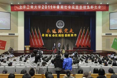 北京工商大學2011年暑期社會實踐以紀念中國共產黨成立90周年為契機,以“永遠跟黨走”為主題,采取集中與分散相結合、分層次、項目化的組織管理模式。實踐內容包括:(一)延續我校品牌實踐項目“十鄉百村千人行,深入基層看民生”。九個學院共派出12支實踐隊伍,500余名師生奔赴北京市房山區南召、佛子莊、石窩、長溝等12個鄉鎮。各學院依托自身專業特色,結合各實踐基地具體情況,開展了以英語和計算機教學、素質拓展訓練、文體活動為主要內容的夏令營支教,以知識競賽、紅歌合唱、紅色影片欣賞為主要形式的黨史宣傳,以走訪農戶、對話基層干部、采集基礎數據為主要途徑的民生調研,并開展了法律知識、食品安全知識普及。實踐團還對當地歷史檔案館、優秀農村企業進行了參觀學習,并走進敬老院、街道社區開展志愿服務等。“十鄉百村千人行”暑期社會實踐自2005年已連續開展7年,先后約3500人參與其中。該社會實踐活動已連續5年獲得全國及省部級獎勵,今年亦被評為北京市重點團隊。(二)深入基層社區,追尋城市發展。組織大學生深入社區,走訪家庭。通過與豐臺、石景山、海淀等地區部分社區進行對接,引導、鼓勵廣大青年學生結合自身特點,充分發揮高校智力、人力資源優勢,切實服務“人文北京科技北京綠色北京”建設。(三)訪京城高新企業,探人才發展之路。各學院分別結合本專業特點,帶領學生到企業進行調研和實習,走訪了東軟集團、北京順鑫鵬程食品廠等數十家企業,將所學專業知識得到應用和轉化。(四)培養科技創新能力,專業實踐出真知。鼓勵學生根據專業特點組成學術科技實踐隊伍,在實踐中發現真知、運用真知,在解決實際問題中增長才干,不斷提高實踐能力、創新創業能力。(五)尋找紅色記憶,擔當歷史使命。北京工商大學赴內蒙古興安盟開展京外實踐活動,該實踐團隊獲評全國大學生“三下鄉”社會實踐活動重點項目。組織學生重走紅色革命路線,探訪革命傳統教育基地;走訪當地掛職干部和西部計劃支邊大學生等優秀青年群體,用身邊的青年榜樣教育學生,培養高度的社會責任感和使命感。(六)思政教學專題調研。由馬克思主義學院負責指導社會實踐專題調研和選派專業教師帶隊參加實踐,參與人數700余人,前往大興區老宋瓜園生態農業基地、北宅村等地開展專題調研。此外,還有1000余名同學參與了自由組隊的分散實踐項目。