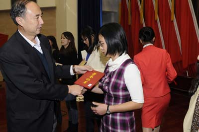 校團委書記呂良宣讀了關于表彰北京工商大學2011年暑期社會實踐優秀團隊、優秀帶隊教師、優秀個人的決定。24支暑期社會實踐團隊獲得優秀團隊稱號,26名帶隊老師獲得優秀帶隊老師稱號,220名同學獲得優秀個人稱號。到會領導和嘉賓為獲獎個人和集體頒發了證書。