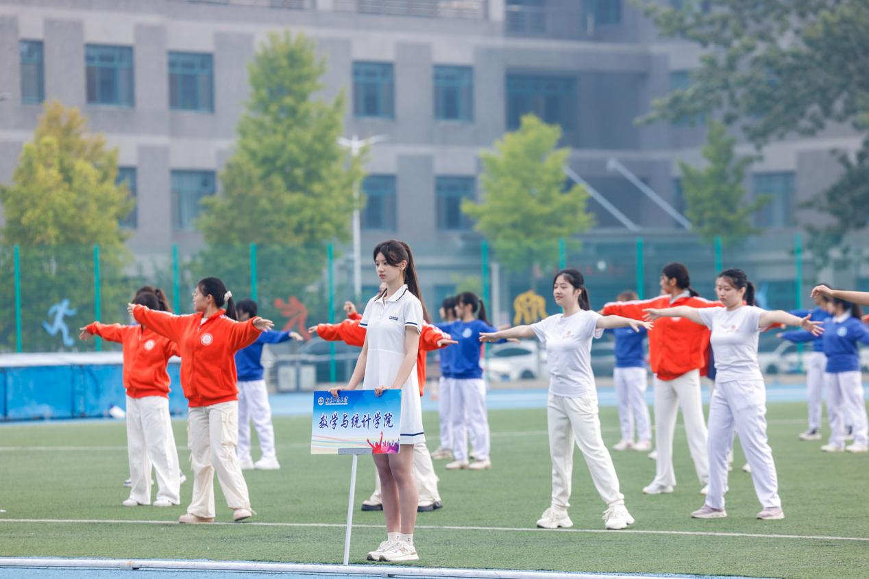恰同學(xué)少年,風(fēng)華正茂。伴著《運(yùn)動(dòng)員進(jìn)行曲》高昂的旋律,運(yùn)動(dòng)員代表隊(duì)昂首挺胸地走進(jìn)田徑場(chǎng),進(jìn)行廣播體操表演,他們身著院服,口號(hào)嘹亮,精神抖擻。揮舞的旗幟、整齊的隊(duì)形。莘莘學(xué)子以蓬勃青春活力。盡顯新生們昂揚(yáng)向上的學(xué)子風(fēng)采。