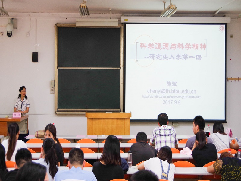 當天下午,學院在阜成路校區召開了研究生迎新大會。學院全體領導班子、研工組老師及全體新生參加了本次見面會。院長蔡強介紹了學院整體情況,各學科發展歷史,專業特色和學科優勢,并對新生們提出要求和希望;副院長劉新亮向新生們詳細介紹了研究生階段的培養方案以及《研究生手冊》,使同學們能夠更加明確讀研期間的著力點,更好地完成學業以及科研任務;黨委副書記楊立功老師做了研究生安全教育與心理健康教育,提醒同學們要注意消防安全及人身財產安全,要提高警惕,防止上當受騙,要合理規劃時間,積極化解負面情緒。黨委書記陳誼老師做了“科學道德與科學精神專題講座”,使研究生們進一步地了解科學精神的本質,她鼓勵大家具備創新意識,同時要強化學術首先,注意學術規范。