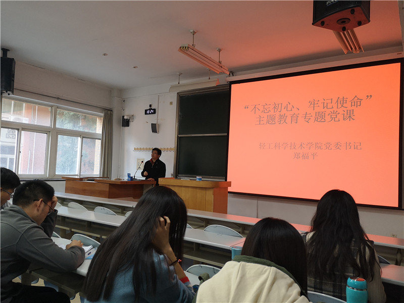 為學習貫徹習近平新時代中國特色社會主義思想,聚焦“不忘初心、牢記使命”,近日,輕工科學技術學院黨委書記鄭福平為全體學生黨員、發展對象和入黨積極分子講授了一堂“不忘初心、牢記使命”主題教育專題黨課。