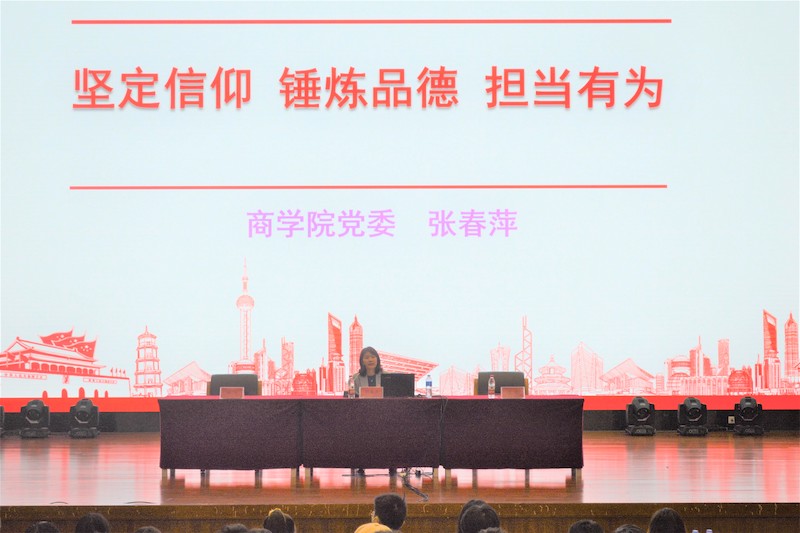 商學(xué)院黨委書記張春萍為同學(xué)們講授黨課第一講。她以“堅(jiān)定信念、錘煉品德、爭當(dāng)先鋒”為題,從理想與信仰、我們的新時(shí)代、青年的使命與擔(dān)當(dāng)、加強(qiáng)學(xué)習(xí)與實(shí)踐四個(gè)方面,闡釋了新時(shí)代青年如何堅(jiān)定信念、錘煉品德、爭當(dāng)先鋒。她談到,信仰決定了人的價(jià)值取向,廣大青年要把遠(yuǎn)大理想與社會(huì)責(zé)任結(jié)合起來,堅(jiān)定信念、志存高遠(yuǎn)。抗疫取得的階段性勝利充分彰顯了中國共產(chǎn)黨領(lǐng)導(dǎo)和我國社會(huì)主義制度的優(yōu)勢。新時(shí)代、新發(fā)展,我國進(jìn)入了新的發(fā)展階段,邁向新的奮斗目標(biāo),青年學(xué)生要肩負(fù)起時(shí)代賦予的光榮使命。她帶領(lǐng)同學(xué)們學(xué)習(xí)了抗疫英雄模范的事跡,回顧了習(xí)近平總書記近年來對青年學(xué)子的殷切寄語,著重解讀了黨的十九屆五中全會(huì)精神的重要意義、“十四五”時(shí)期發(fā)展目標(biāo)和2035年遠(yuǎn)景目標(biāo)、四個(gè)全面的新表述以及國家新時(shí)代的發(fā)展戰(zhàn)略等,強(qiáng)調(diào)要認(rèn)真學(xué)習(xí)貫徹黨的十九屆五中全會(huì)精神,增強(qiáng)責(zé)任感,立足發(fā)展所需,學(xué)以致用,努力成為堪當(dāng)國家改革發(fā)展重任的棟梁之材。張春萍寄語學(xué)子,要“勇做走在時(shí)代前面的奮進(jìn)者、開拓者、奉獻(xiàn)者”,扣好人生的第一粒扣子。她引用習(xí)近平總書記在中央黨校中青年干部培訓(xùn)班開班式上講話中勉勵(lì)年青干部要具有的七種能力,請同學(xué)們對照自己做過的一項(xiàng)工作總結(jié)收獲,明確自己的能力和目標(biāo),并走入同學(xué)中間與同學(xué)們進(jìn)行互動(dòng)。最后,張春萍對入黨積極分子提出殷切希望:希望同學(xué)們注重品德修養(yǎng),沉潛學(xué)習(xí),勇于創(chuàng)新,保持樂觀堅(jiān)毅,培養(yǎng)勤勞自律,勇于擔(dān)當(dāng)有為,加強(qiáng)學(xué)習(xí)與實(shí)踐,做知行合一的新青年。