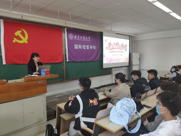 3月31日,國際經管學院召開本科生黨史學習教育動員大會,學院黨總支副書記單紫薇作動員講話,全體預備黨員和入黨發展對象參加了大會。