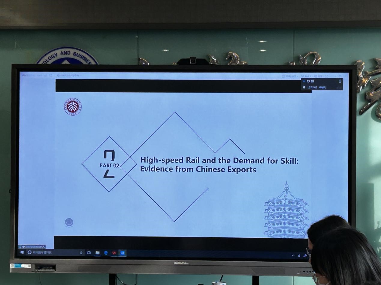 正在美國米蘭訪學的北京大學胡裕民博士,在線報告了工作論文“High-speed Rail and the Demand for Skill: Evidence from Chinese Exports”,文章在中國高速鐵路快速發展的背景下,探討高鐵對高技能與低技能勞動需求的影響,研究發現高鐵促進了商務差旅,提高了國內外包的匹配效率并降低了外包中間品的成本;替代效應導致企業對低技能勞動的需求降低;產出效應導致企業對高技能勞動的需求提高。