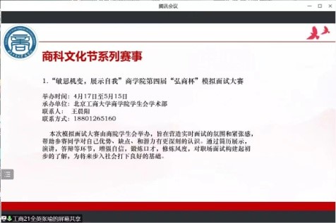 為加強(qiáng)學(xué)風(fēng)建設(shè),促進(jìn)學(xué)生專業(yè)實(shí)踐能力提升,培養(yǎng)優(yōu)秀商科人才,引導(dǎo)學(xué)生在居家學(xué)習(xí)之余參加學(xué)術(shù)競(jìng)賽活動(dòng),商學(xué)院第十屆商科文化節(jié)開幕式于4月13日線上舉行。本屆商科文化節(jié)的主題是“承商科之志,筑青春夢(mèng)想”,參加開幕式的有學(xué)院黨委副書記張倩、團(tuán)委書記及各年級(jí)輔導(dǎo)員,邀請(qǐng)了五位優(yōu)秀學(xué)生代表進(jìn)行經(jīng)驗(yàn)分享,活動(dòng)吸引了近300名本科生參加。