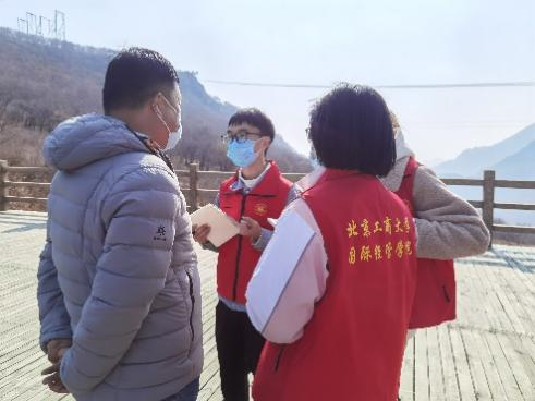 在紅色廣場(chǎng)上,碩大的石碑記錄著英勇先烈的革命事跡。史家營(yíng)地區(qū)在抗戰(zhàn)過程中形成了“保家衛(wèi)國(guó),不怕犧牲,勇于奉獻(xiàn)”的紅色精神,學(xué)生黨員、團(tuán)員開展宣誓儀式,牢記初心使命,砥礪前行。在景區(qū)內(nèi),各實(shí)踐組也對(duì)游客進(jìn)行了游覽體驗(yàn)調(diào)研,游客們對(duì)百瑞谷依托紅色資源發(fā)展旅游給予了高度的肯定,并對(duì)信息咨詢、便民服務(wù)等提出了建設(shè)性的意見。