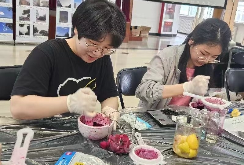 活動分為三個主題7個環節,在“創香氣之美”中,親自動手體驗DIY胭脂、草本面膜、香水、蘆薈膠;在“話分子廉潔”中,展示了研究生們創作的含有廉潔寓意的球棍模型;在“展綠色之顏”中,展示了研究生們連續七天拍攝的藍天照片,展示了同學們以“為地球上妝”為主題的妝容創作。