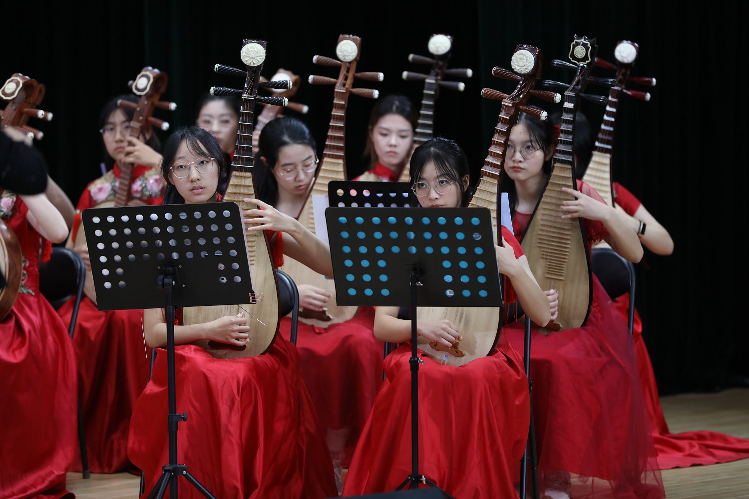 2022年11月,我校學生民樂團在體育與藝術教學部的支持下,克服疫情困難,充分利用課余時間刻苦訓練,錄制參賽作品《慶典序曲》。作品旋律性極強,作品采用典型的三部曲式,樂句之間緊湊靈巧、順暢灑脫,將高昂雄渾、熱鬧喧天的節日主題展現的淋漓盡致。快板部分洋溢著活潑喜慶的氣氛,慢板則是更加柔順抒情、清晰透亮,全曲喜氣洋洋、振奮人心,將自強不息、奮發進取的民族精神盡情揮灑。