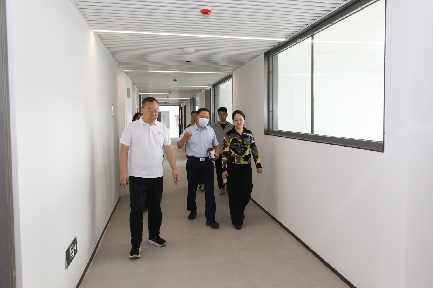 徐淼一行實地走訪了AB座教學科研樓,察看項目建設情況,了解學校AB座教學科研樓竣工驗收事宜、外電源接入情況。