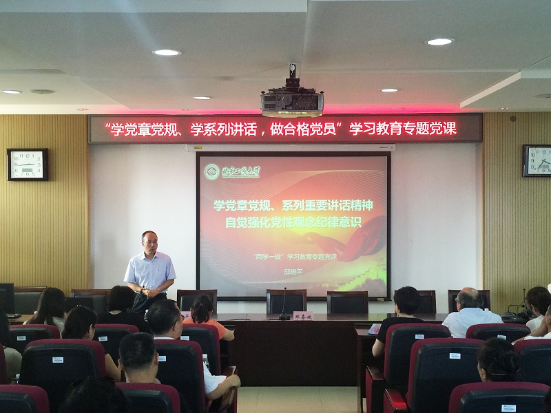 為深入開展“兩學一做”學習教育,6月15日,紀委書記邱曉平為學校專兼職紀檢監(jiān)察干部、分管單位和聯(lián)系學院的教職工黨員、研究生黨員上了一堂生動的黨課。黨課由紀委副書記鄭喜姣主持。