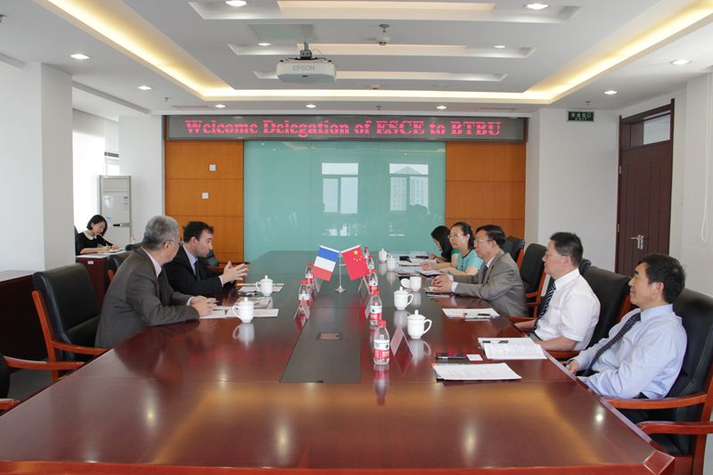 7月6日上午,法國高等外貿(mào)學院院長卡伯·杰洛米(M.CABY Jerome)一行兩人訪問我校,孫寶國校長在阜成路校區(qū)親切會見了代表團一行。會見由副校長李朝鮮主持。