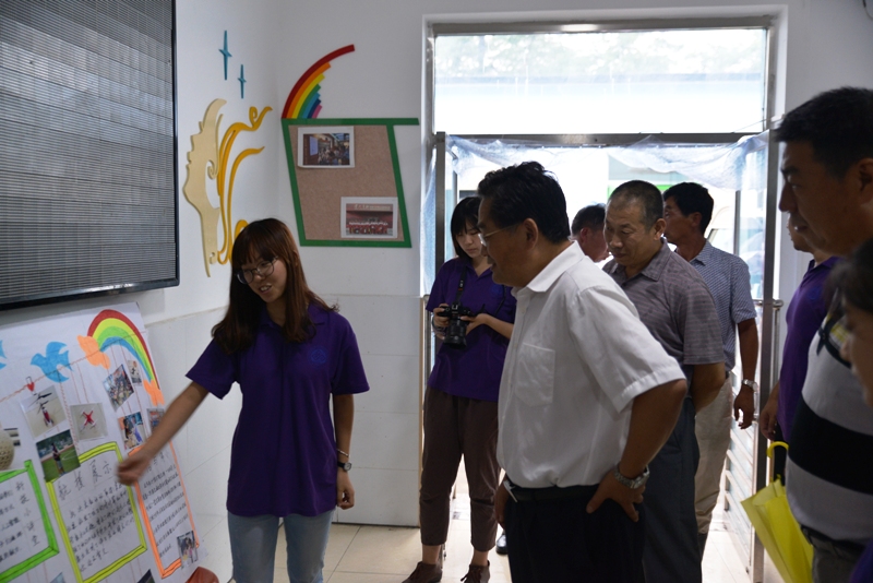 張德玉副書記一行重點視察了實踐分團結合各專業特色開展的創新課程,從科技著手,孩子們經過訓練,操作航模嫻熟穩重。從傳統文化著手,將文化底蘊融入課堂之中,以情景劇、詩朗誦、話劇的形式,培養學生的愛國信念和放眼世界的胸懷。從專業優勢著手,結合英語、法學等專業知識,將創新元素融入專業課程,使課程豐富,形式活潑。張德玉副書記一行對特色課程的實踐成果給予充分肯定,并鼓勵實踐團成員從暑期社會實踐中積累從課本中得不到的經驗,不畏艱苦、戰勝困難,在實踐中服務,在奮斗中進取,不斷發揚奉獻精神,繼續為社會做出更多的貢獻。希望我校學生與實踐基地的孩子們雙向學習,以大學生為標桿和榜樣,激發學習興趣,時刻謹記夢想,踏實篤行。