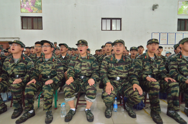 19號和20號連續兩天暴雨,教官們緊急啟動預備計劃,根據天氣情況安排了條令學習、內務整理、學軍歌等室內活動和小范圍的室內訓練,并于20號下午舉行會操比賽和歌詠比賽。