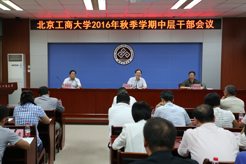 孫寶國校長對假期幾項工作進行了總結,對新學期工作提出要求。他談到,暑假期間宿舍樓改造工程進展良好,有效緩解了學生住宿壓力,在新校區二期建設完成之前,首先要保障學生住宿和教學用房;要從戰略角度、按照首都疏解功能規劃兩校區,擴大研究生和留學生規模,提高國際化程度,提升學校知名度;學校改版后的英文網站已經上線,后期要加強建設和維護;在新公布的2016年國家重點研發計劃中,我校2個項目和8個課題獲批,位列全國第66位。孫校長指出,剛剛召開的學校“雙一流”建設和學科發展培訓會,校領導和6位院長分別發言,進一步明確了發展方向和奮斗目標,會議統一了思想和認識,增強了共識,希望大家進一步聚焦“一流學科、一流本科”,聚焦“369”和“421”目標,圍繞提升人才培養質量和學科建設水平,集思廣益,集中力量,齊心協力,開拓新局面。孫校長對各學院今年學生四六級通過情況進行了通報,希望大家總結經驗,倡導學校以學生為主,學生以學習為主,通過新生引航工程、實行導師制等舉措加強新生教育。
