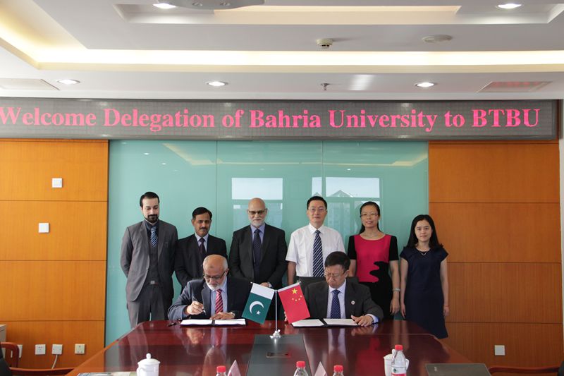 會(huì)談后,孫寶國(guó)校長(zhǎng)和坦維爾•菲茲校長(zhǎng)分別代表兩校簽署了北京工商大學(xué)和巴基斯坦巴利亞大學(xué)校際合作備忘錄。