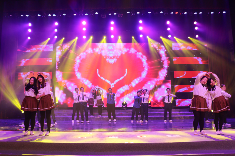 歌唱類的節(jié)目同樣精彩紛呈。無伴奏的人聲合唱阿卡貝拉,《布谷鳥之歌》《好想你》《小幸運》等歌曲清新而婉轉(zhuǎn)。學(xué)校合唱團(tuán)表演的《雪花的快樂》和《田野在召喚》兩首歌曲將大家?guī)氚察o祥和的氛圍,專業(yè)的演出、悠揚的歌聲贏得了陣陣掌聲。來自17個國家的27名留學(xué)生揮舞著各自國家的國旗,用自己國家的語言為大家送上新年祝福,并用中英文演唱了一曲《友誼地久天長》,讓大家感受到世界不同國家的溫暖情誼。在節(jié)目《青春夢響》中,校園歌手們用《改變自己》《我的未來不是夢》等一首首節(jié)奏輕快明朗的歌曲唱出了心里的夢想和對夢想的那份追求。