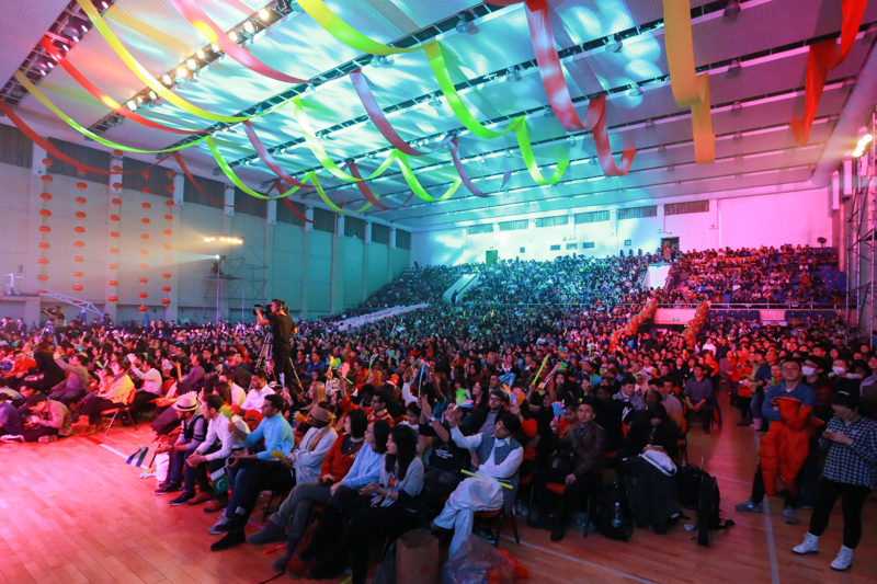 騏驥過隙,校園里到處洋溢著迎接新年的氣息,璀璨奪目的彩燈將兩校區(qū)校園裝扮得色彩斑斕。天橋、“百花”雕塑被藍(lán)色的彩燈環(huán)繞,絢麗奪目。良鄉(xiāng)校區(qū)文體館內(nèi),舞臺上燈光閃耀,光彩熠熠;舞臺下座無虛席,氣氛熱烈。12月30日晚,“陽光路上——學(xué)校2017年元旦晚會”隆重舉行。