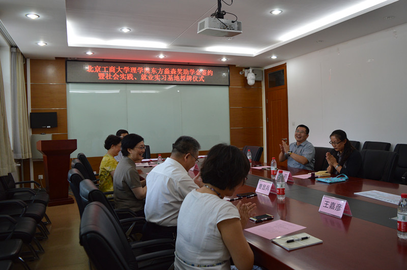 6月26日,理學院舉行東方淼森獎助學金簽約暨社會實踐、就業實習基地授牌儀式。學校副校長張耘、北京東方淼森生物科技有限公司總經理邱顯榮出席儀式,北京東方淼森生物科技有限公司綜合管理中心經理李莉,我校校友會辦公室主任呂東燕、理學院黨委書記祝鈞、副書記王嘉彥參加了儀式。活動由理學院院長曹顯兵主持。