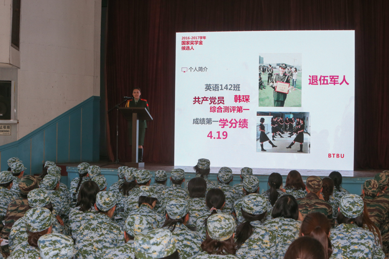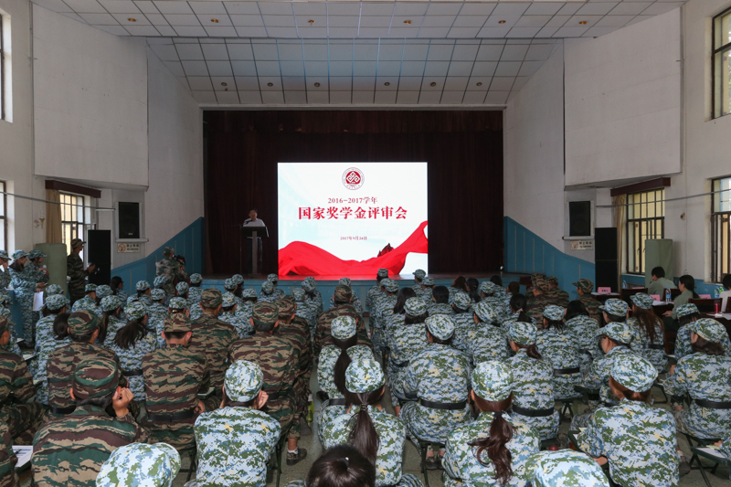 9月24日下午,我校2016-2017學年本科生國家獎學金評審會在延慶康莊611學生軍訓基地舉行。學校黨委副書記張德玉、學生處處長呂素香、校團委書記王海偉、部分學院黨委書記、副書記出席并參與評審。144名正在軍訓基地參訓的2017級新生代表觀摩并作為學生評委參與評審。