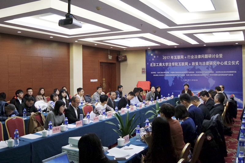 1125日,由法學院、中國電子商務協會食品醫藥產業促進會、中關村智匯產業技術研究所、北京市企業法治與發展研究會、中關村ICT和移動互聯網知識產權產業聯盟共同主辦的“互聯網+行業法律問題研討會暨北京工商大學法學院互聯網+政策與法律研究中心成立儀式”舉行。來自首都各界的學者、專家、法官、律師等共30余人出席了此次會議。會議由北京工商大學法學院互聯網+政策與法律研究中心主任劉筠筠教授主持。