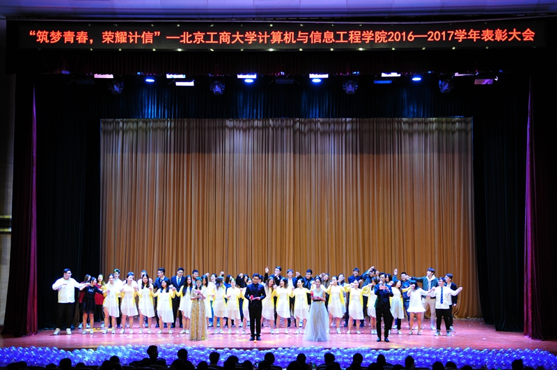 為表彰先進個人和集體,發揮榜樣作用,12月22日,計算機與信息工程學院在良鄉校區舉行了2016-2017學年“筑夢青春、榮耀計信”表彰頒獎典禮暨迎新晚會。副校長方德英出席并致辭。偉業嘉園社區、佛子莊鄉中心小學、馨然嘉園社區等共建單位代表、學院領導、教師以及學生共聚一堂,總結2017年獲得的豐碩成果,展望2018年美好未來!