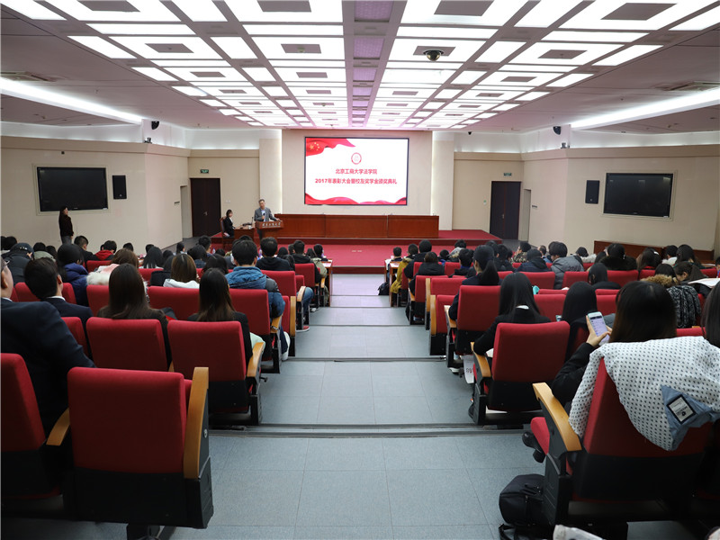 大會在嘹亮的國歌聲中拉開帷幕。院長謝安平教授為大會致辭,他回顧了過去一年學院本科教學、科研工作中取得的可喜成績,同時對同學們提出期望,希望同學們接下來的學習工作中能夠再創佳績,為實現全面推進依法治國的戰略目標擼起袖子加油干,為學院的發展建設貢獻自己的智慧和力量。
