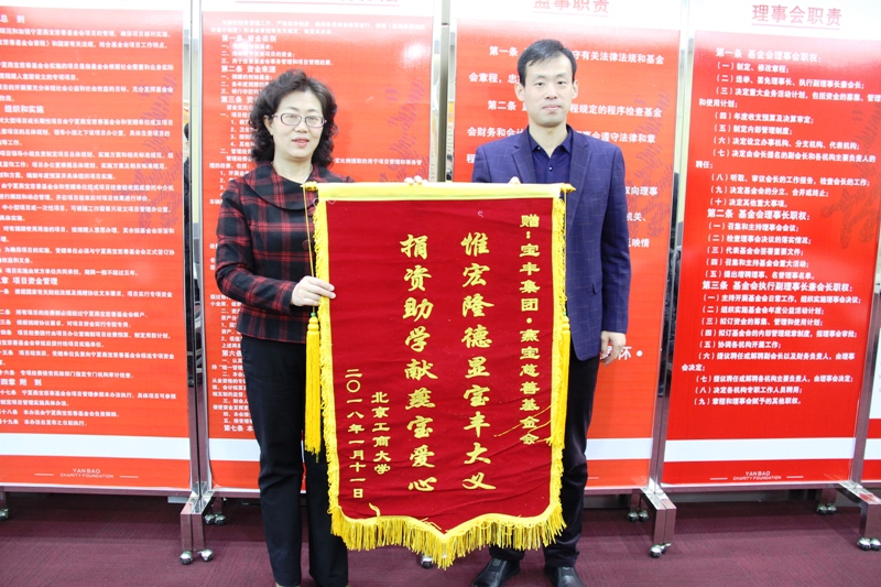 由全國500強民營企業寶豐集團出資設立的燕寶慈善基金會自2013年起連續對我校寧夏南部山區9縣5鄉105名學子提供每人每年4000至5000元的經濟資助,累計金額超過130萬元。學校此行帶去了寧夏受助學生的感謝信和感恩視頻,為燕寶慈善基金會贈送了錦旗并進行了深入交流。