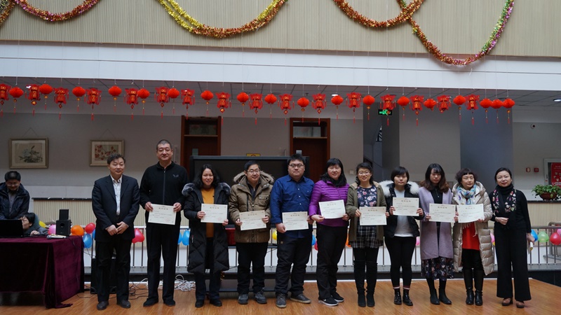 方德英副校長在總結講話中對圖書館在各項工作中所取得的成績給予充分肯定。他指出,過去的一年里,全體館員秉承優(yōu)良傳統(tǒng),緊跟時代步伐,注重思想引領,注重能力提升,注重科學管理,圍繞中心,服務大局,在提供科研成果大數據分析、小圖工作室、微信服務等輔助教學和科研工作中成效顯著、特色鮮明,特別是協(xié)助申博工作做細做實,信息權威準確又及時,在注重基礎工作創(chuàng)新的同時收獲了科研和教育教學成果,做到了傳統(tǒng)與現代相結合;同時充分利用勤工助學實踐平臺,如十九大召開當天舉辦的業(yè)務技能比賽中,勤工助學同學和老師一起參賽,老師發(fā)揮傳幫帶作用,同學在服務讀者的同時,自身也得到鍛煉和成長,做到了服務與育人相結合。他談到,圖書館在班子的帶領下,館風館貌和優(yōu)質的服務得到師生的肯定,所取得的成績是大家共同努力的結果。希望圖書館在2018年繼續(xù)做好各項工作,讓更多的師生讀者熱愛書籍、提高閱讀興趣,為學校需要提供更多信息服務。最后,他代表學校領導向圖書館全體人員提前致以新春的祝福。