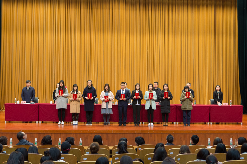 李朝鮮副校長宣讀了《北京工商大學關于表彰2017年全國大學英語四、六級考試成績優異學生及2017年數學競賽獲獎學生的決定》。此次學校表彰了115名大學英語四六級考試成績優異的學生,其中英語四級一等獎2人、二等獎7人、三等獎26人、優秀獎66人,英語六級優秀獎14人;表彰了172名在美國大學生數學建模競賽、國家大學生數學建模競賽、國家大學生數學競賽中獲獎的學生;還表彰了112名在校內數學競賽中獲獎的學生。在師生們熱烈的掌聲中,頒獎領導和老師將滿載榮譽和鼓勵的獎項分別頒發給每一位獲獎學生并合影留念。
