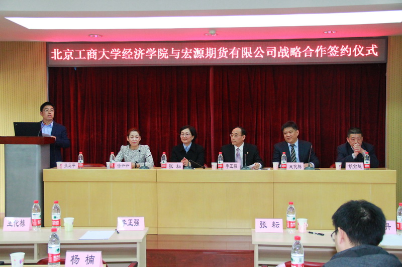 大連商品交易所理事長李正強在發言中提到,大連商品交易所一直致力于期貨行業的人才培養,已經在38所高校推動了高校期貨人才培育工程項目,選擇北京工商大學也是因為期貨專業一直以來是學校的優勢學科,為期貨行業培養了眾多人才。宏源期貨有限公司董事長王化棟談到,北京工商大學已經為宏源期貨輸送了許多優秀學生,并成長為公司的高管骨干人才,今后將繼續為我校學生提供更多的實習和就業機會。隨后,宏源期貨有限公司與北京工商大學經濟學院、大連商品交易所分別簽署了戰略合作協議。