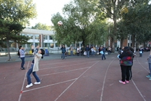 各項目有序進行,參賽老師積極活躍,歡呼聲、笑聲、助威聲在操場上蕩漾。集體跳繩項目中,老師們踩好起跳、步伐、出線等節奏有序,默契十足。在“沙包攻壘”中,有的老師一上場就被“砸中”,有的老師靈活躲過,一人就堅持了30秒。“毛毛蟲競速”最具看點,老師們喊著“一二”“左右”協調一致快速前進。“聯手穿越”比賽中,柔韌性和協調性好的能一氣呵成,瞬間完成,像此起彼伏的“海浪”,有的手忙腳亂,擠成一團,“圈在其中”無法動彈。“巧接足球”項目考驗兩人的默契程度和協調能力,“三磚渡河”講究手腳協調。