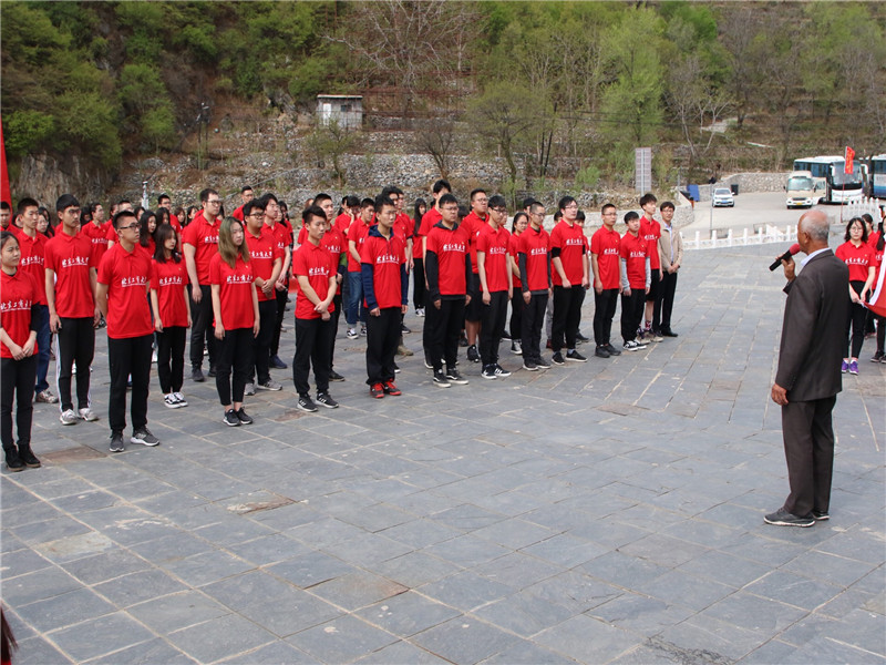 5月4日,迎著初升的太陽,校團委組織100名新團員和團校“優干工程”培訓班學員到紅歌《沒有共產黨就沒有新中國》誕生地——房山區霞云嶺堂上村,在沒有共產黨就沒有新中國紀念館前的巨大黨旗下,開展了一次特別的主題團日活動。