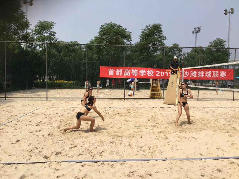首都高等學校2019年陽光體育沙灘排球聯賽于6月7日在中央財經大學落下帷幕,來自25所高校的62支代表隊參賽。我校男排在教練員王然與范紅松老師的帶領下、女排在教練員陳新與劉昌明老師的帶領下雙雙獲得乙組冠軍。我校男女排球隊在以往的比賽中分別獲得過冠軍,但同時獲得冠軍這是第一次。