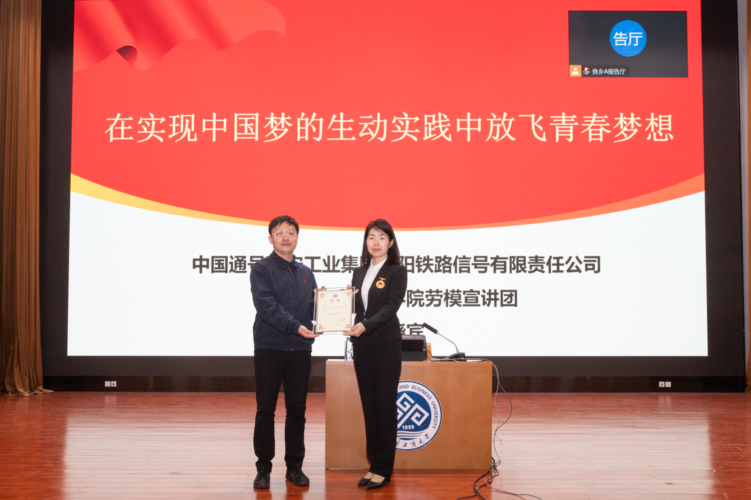 在講座開始前,學生工作部部長鄭光、學校工會常務副主席杜亞輝、學生工作部副部長黨浩分別為授課勞模頒發了我校勞動教育教研室“校外講師”聘書。