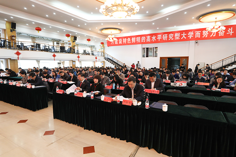 校長孫寶國作題為《凝心聚力謀劃新發(fā)展,砥礪前行共圓“工商夢”,全力推進(jìn)特色鮮明的高水平研究型大學(xué)建設(shè)》的學(xué)校工作報告。他從堅持以政治建設(shè)為統(tǒng)領(lǐng),嚴(yán)格落實黨對學(xué)校工作的全面領(lǐng)導(dǎo);堅持社會主義辦學(xué)方向,多措并舉鞏固人才培養(yǎng)核心地位;堅持將創(chuàng)新作為發(fā)展的核心動力,學(xué)校綜合辦學(xué)實力顯著增強(qiáng);堅持人才是第一資源的觀念,不斷提升教師隊伍建設(shè)水平;落實市委“疏解整治促提升”任務(wù)要求,全面增強(qiáng)基礎(chǔ)設(shè)施和服務(wù)保障能力等五個方面回顧了2019年學(xué)校工作取得的豐碩成績,分析了學(xué)校發(fā)展中亟待解決的問題,提出了2020年學(xué)校主要工作思路。