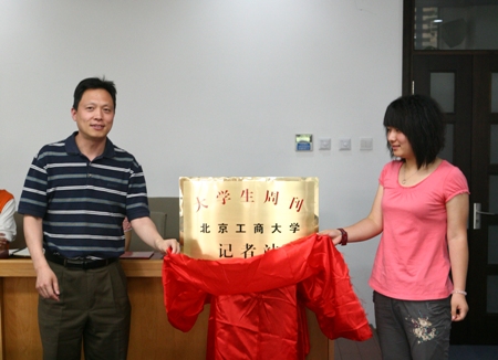 會上,還舉行了《大學生周刊》駐我校記者站的揭牌儀式。我校學生記者團不僅參與學校的新聞宣傳工作,還將作為《大學生周刊》的特約記者,和首都的部分高校學生記者們共同擔負起宣傳首都大學生豐富多采校園生活的任務。