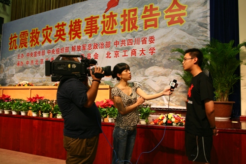 中央電視臺、北京電視臺、北京日報、中國教育報、中國青年報、北京青年報等多家媒體從多個角度對我校英模報告會進行報道,千龍網對報告會進行了現場直播。《北京日報》還以“千紙鶴贈蔣敏 用實際行動向英雄致敬”為副標題,《千龍網》也以“印手模贈衣服 大學生用不同方式向英雄致敬”為標題,對報告會后我校師生產生的強烈反響給予詳細報道并配發圖片。