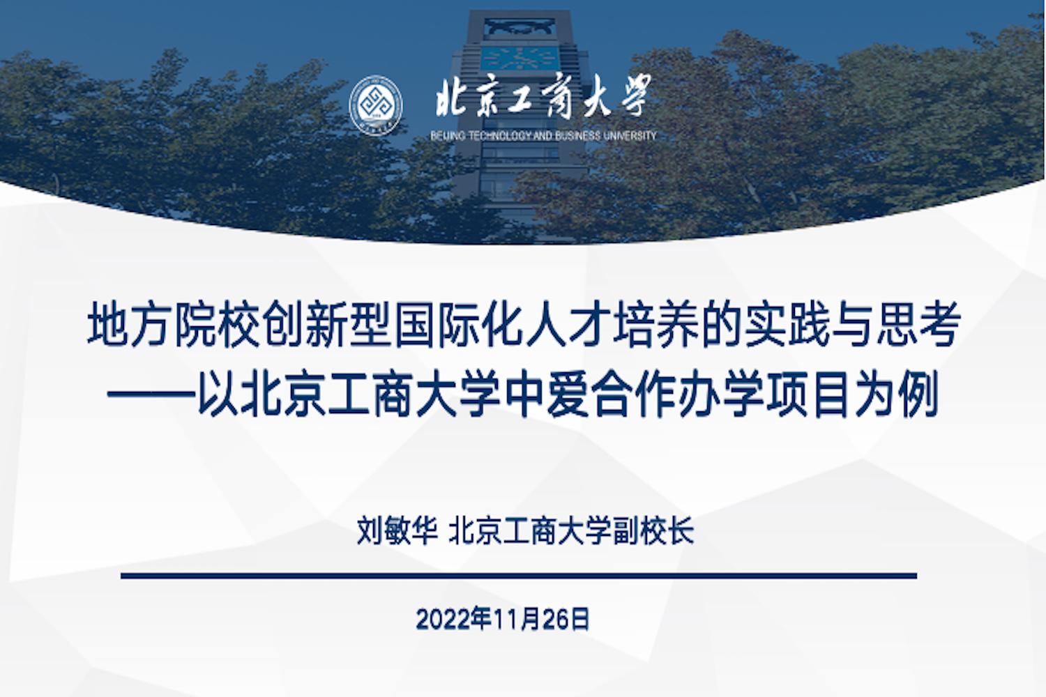 劉敏華作為受邀高校代表在分論壇作題為“地方院校創新型國際化人才培養的實踐與思考”的主旨報告。他表示,創新型人才培養和高等教育國際化是高校的主要職能之一,以高水平中外合作辦學推動新時代人才工作,是深入實施新時代人才強國戰略,加快建設世界重要人才中心和創新高地的必然要求。他指出,地方高校在辦學定位和辦學理念方面具有自身特點,北京工商大學從自身辦學定位和優勢學科出發,與世界一流大學愛爾蘭科克大學聯合開展中外合作辦學項目,通過制定既符合雙方大學定位、體現雙方優勢,又能滿足國內人才市場需求的創新性培養方案,配備雙方優質教學、實習實踐資源,雙方互派師資授課,建立了一整套中外合作辦學項目培養質量監控體系和招生就業服務體系,形成了服務于高水平人才培養的中外合作辦學體系。他強調,未來北工商將進一步完善中外合作辦學項目在人才培養質量、師資建設水平、合作平臺成效等方面的政策措施,營造國際一流的人才發展生態環境,吸引集聚更多優秀的國際化團隊和人才來校工作,為新時代首都發展培養輸送供需匹配的創新型國際化人才,推進學校特色鮮明的高水平研究型大學建設,服務北京高水平人才高地建設。