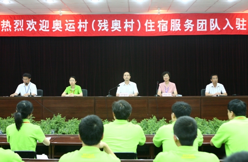 下午大約2:00,志愿者們列著整齊的隊伍進入奧運村,以熟悉工作環境,了解相關事項。領班人員細心的給每一位同學講解,介紹具體的工作細節,從注意禮節、禮貌等行為規范到擦窗、門邊角的細節,志愿者秩序井然,細心傾聽,并不時詢問領班人員,親手體驗。