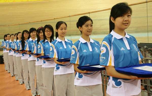 奧組委志愿者部副部長張巨明希望志愿者盡其所能為奧運提供熱情、文明、專業、得體的服務,承擔起服務奧運的光榮使命,為祖國、為老山場館增添榮譽。