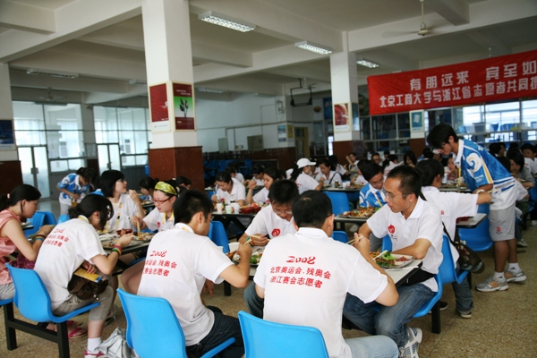 中午1:00,學校在西區食堂二層為浙江志愿者舉行了簡單而豐盛的歡迎宴會。