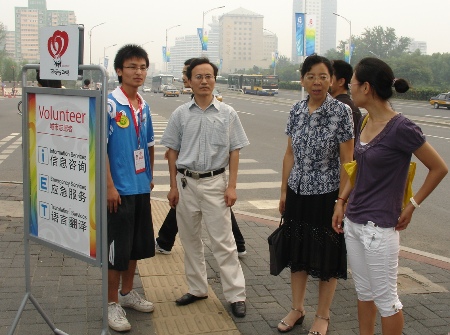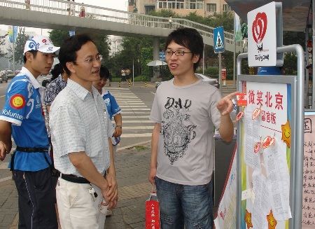 8月6日,我校化工學(xué)院院長(zhǎng)田媛、黨總支副書記徐寶財(cái)在幾位輔導(dǎo)員的陪同下一同看望并慰問了堅(jiān)持在酷暑中服務(wù)奧運(yùn)的城市志愿者。